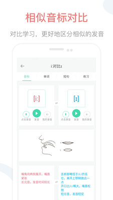 2、提供音标对比栏目,方便用户比较不同的音标,帮助用户理解去学习。