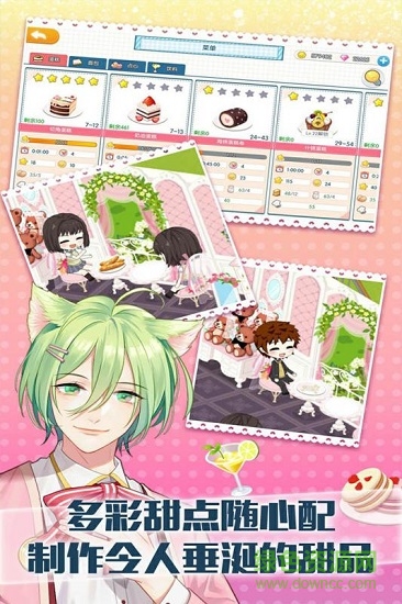 玩家还可以随意布置甜品店、休息室,可选种类有操作台、橱柜、桌、椅、墙纸、地板、装饰及其他功能性家具,共十余种类别,数百种家具。
