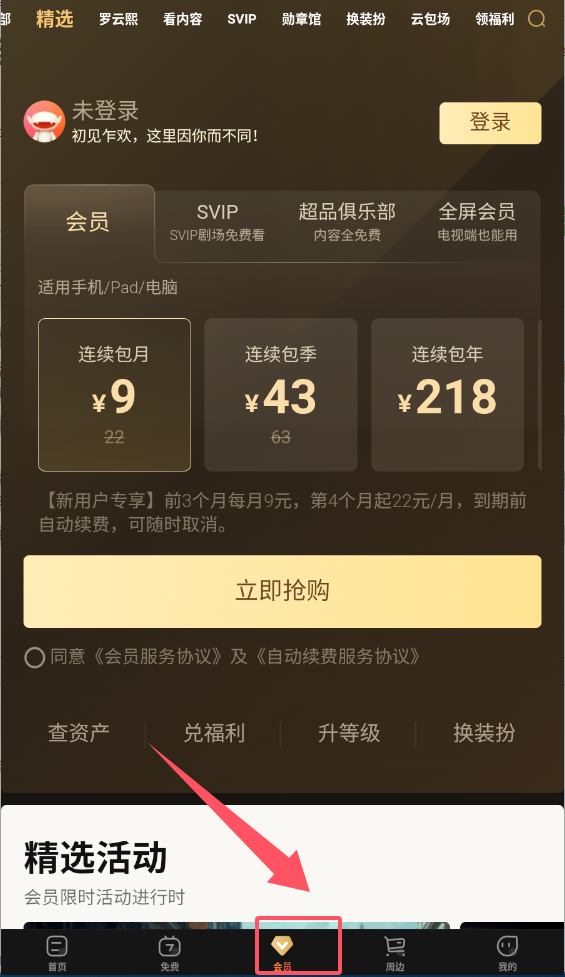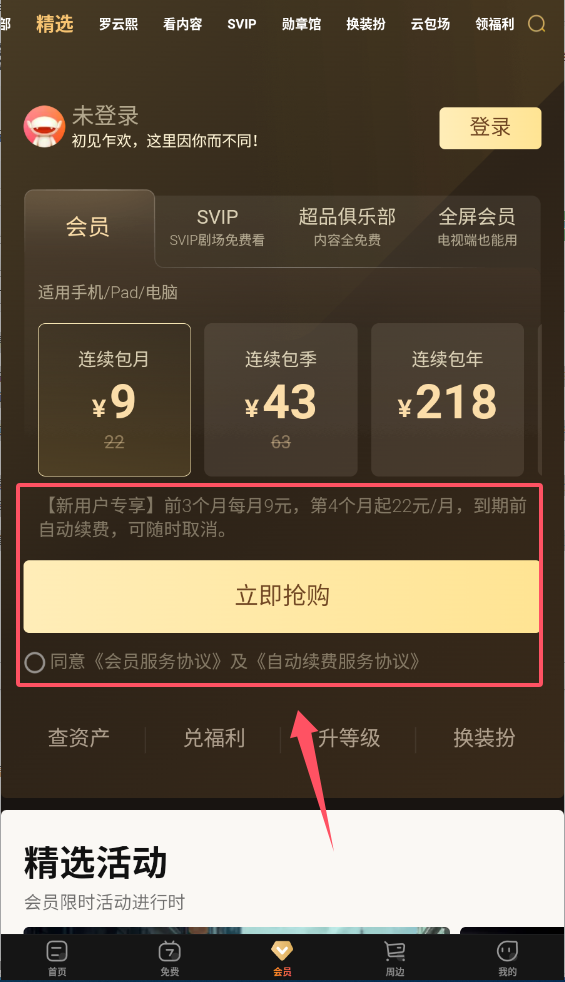 1、在会员中心可以查看不同类型的会员权益,比如普通会员、SVIP等。根据需求选择适合的会员类型,新用户通常有专属优惠活动呢。