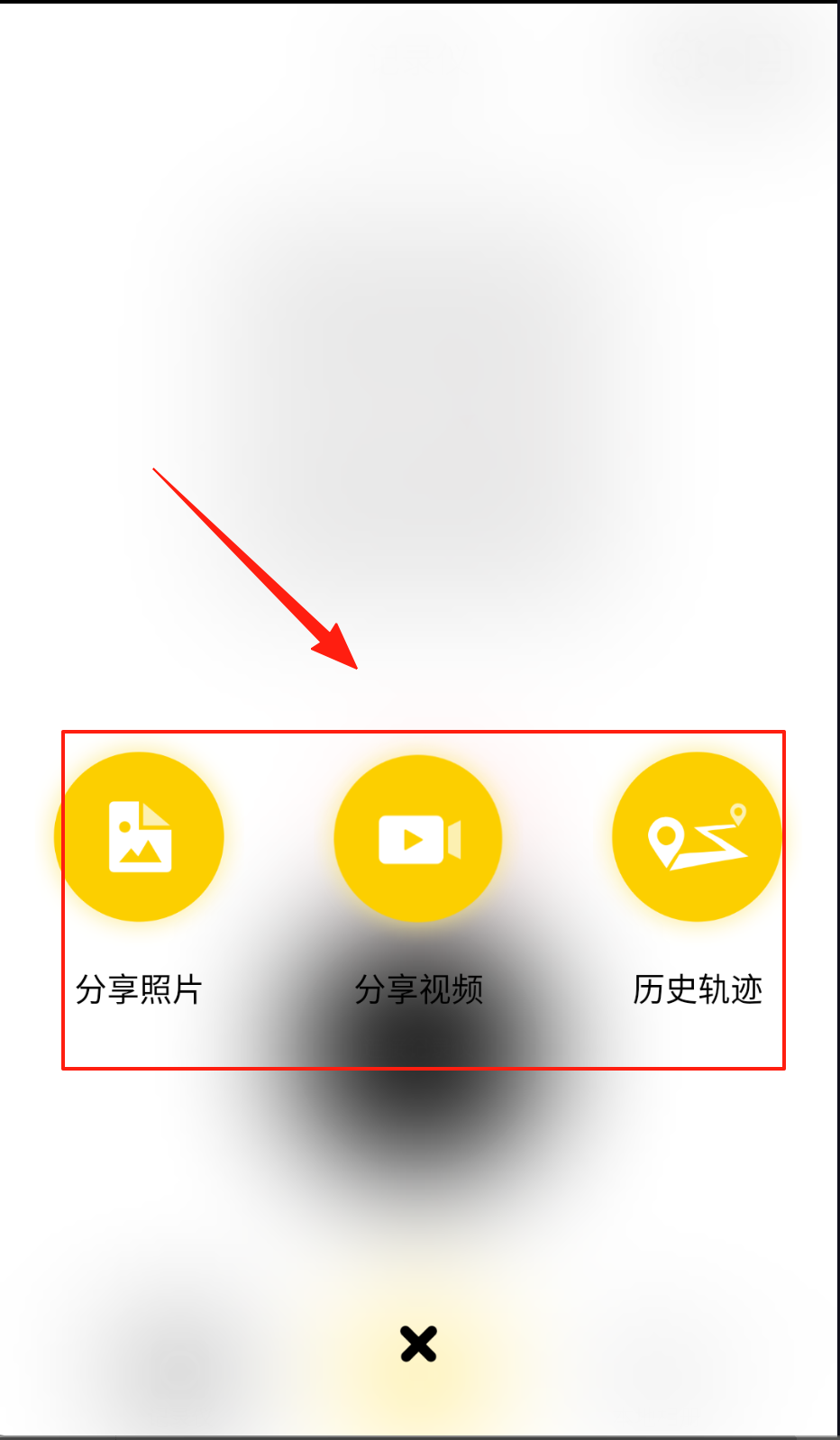 2、分享类型,之后用户就可以在照片、视频、轨迹三个类型中选择一个自己要分享发布的类型。