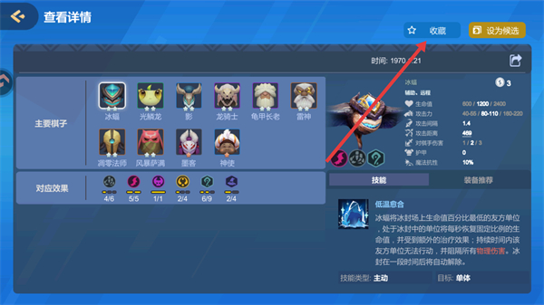 3、在阵容详细信息界面,点击收藏按钮,即可将该阵容收藏。