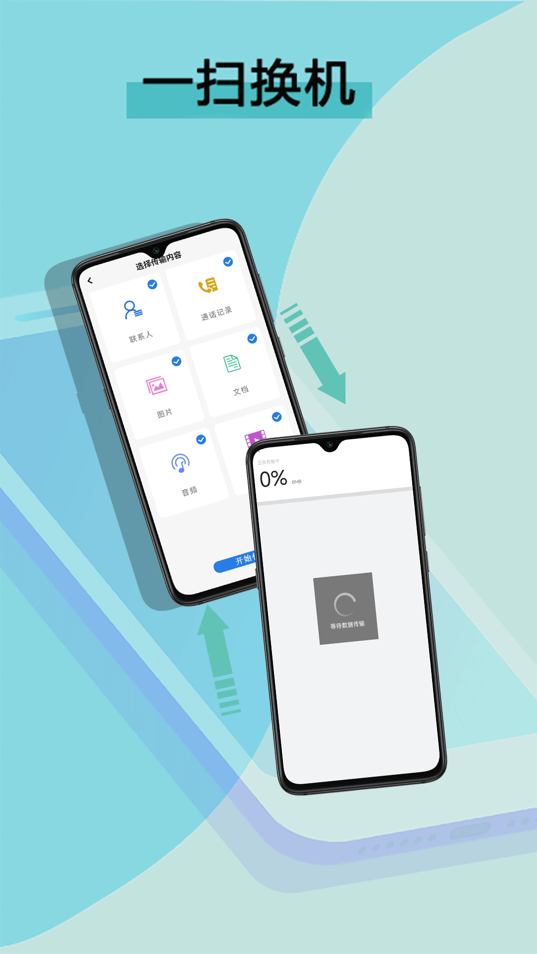 3、数据换机助手支持一键轻松切换,支持联系人、软件、短信、文件、通话记录的传输。