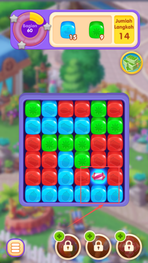 3、开始游戏:在关卡界面查看60 Jumlah和14 Langkah目标,点击方块开始消除。