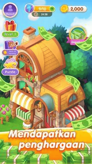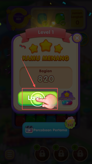 4、完成关卡:当界面显示KAMU MENANG和★★时,点击820领取奖励进入下一关。