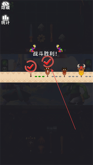 4、击败所有怪物后,获得战斗胜利,继续挑战下一个关卡,不断收集物品装满背包。