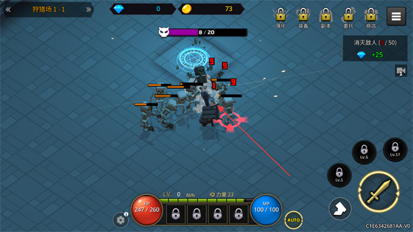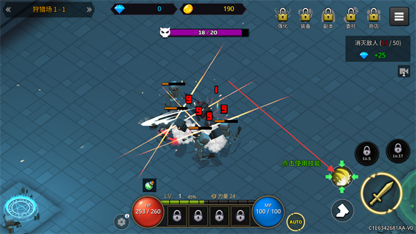 1、在狩猎场1-1中,操控角色攻击敌人,通过不断击杀敌人积累金币和经验,提升等级。