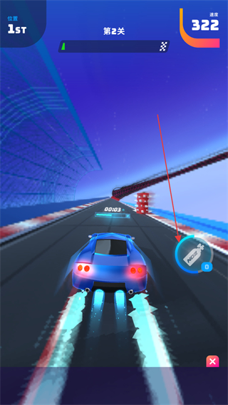 2、穿过彩色隧道时,注意躲避隧道内的障碍物,同时利用隧道地形保持高速行驶。