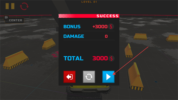 4、成功抵达终点后,可获得奖金奖励,点击蓝色箭头按钮继续挑战下一关。