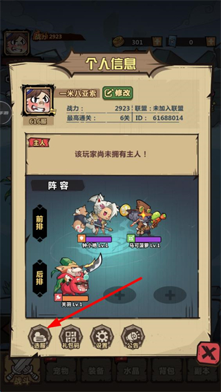 1、进入游戏主界面后,点击左上角个人头像,进入个人信息界面。
