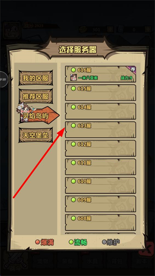 3、在选择服务器界面中,选择想要切换的服务器分类,如灵焰岛屿,