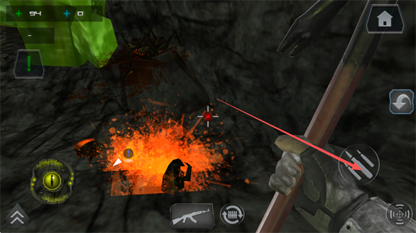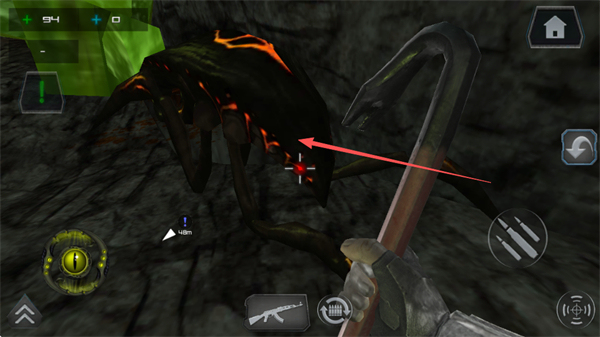 2、遇到蜘蛛类怪物时,切换武器如枪械、镰刀发起攻击,消灭怪物推进探索进度。