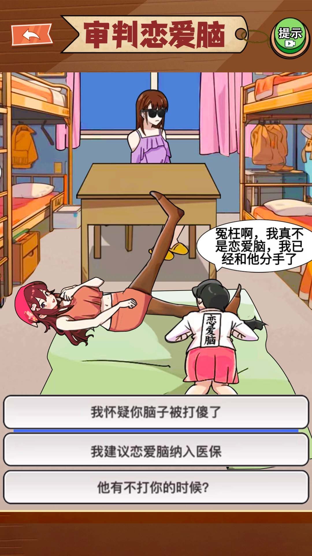 《恋爱脑大作战》是一款趣味剧情闯关手游,玩家需要扮演一个恋爱脑人物,并且帮助人物来做出选择,并且在游戏中玩家可以根据就知道喜好来获取道具,并且这些道具可以根据不同的方式来帮助自己进行闯关,游戏操作简单拥有精美的画质,快来下载试试吧。