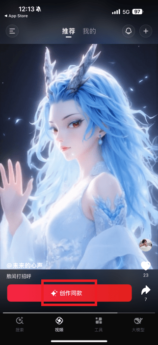 2.我们可以刷视频,直接点击创作同款。