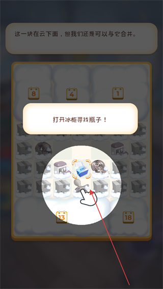 2、在合成界面点击目标物品,打开冰柜寻找瓶子,完成物品收集。