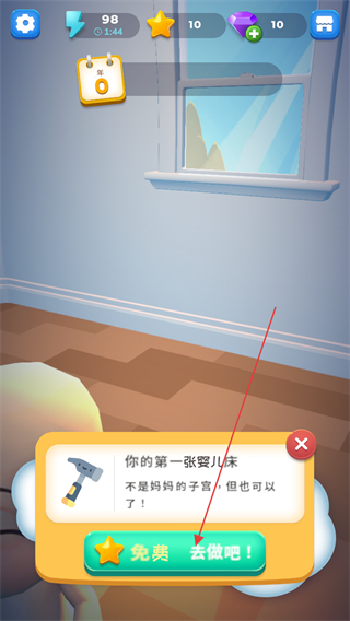 4、获得婴儿床道具后,点击免费去做吧!使用道具,推进游戏进程。