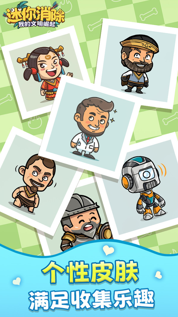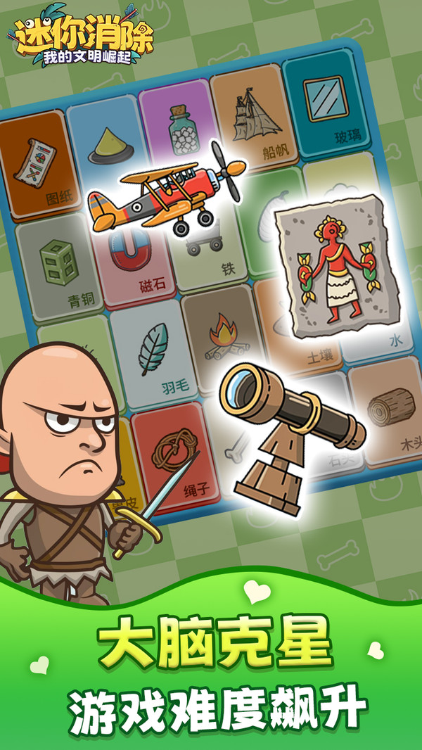 《迷你消除》是一款通过叠叠消来通关的一种休闲类型手游,游戏中的元素包含了从史前时代到现代的历史知识,并且还描绘了未来的各个阶段,其中有历史文化、科技还有艺术等等各个方面。每个阶段的设计都非常的独具一格,不一样的关卡和挑战,让玩家在解谜的时候,还能感受到时代变迁还有人类历史的伟大。