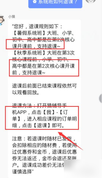 5.系统班退课支持在课程前退课在订单页面点击【退课】即可。