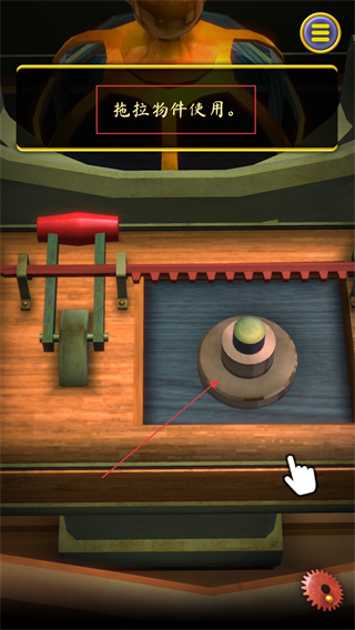 4、按照提示拖拽物件使用,将获得的齿轮拖拽到装置的齿轮槽位置,完成该道具的使用。