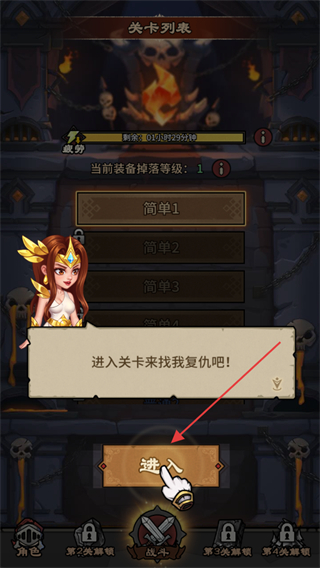 2、选择目标难度的关卡,再点击页面下方的进入按钮,即可进入对应关卡。