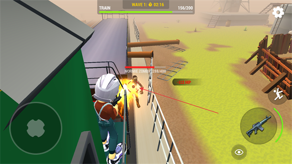 1、使用枪械攻击靠近的僵尸,清理列车旁的敌人,推进关卡进度。
