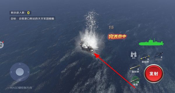 3、瞄准敌方舰艇发射武器,达成完美命中效果,有效摧毁目标,减少剩余敌人数量。