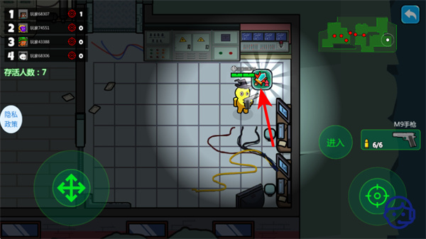 2、依照红色箭头指引点击目标道具如补给箱,可拾取道具提升战力,这是强化战斗能力的核心步骤。