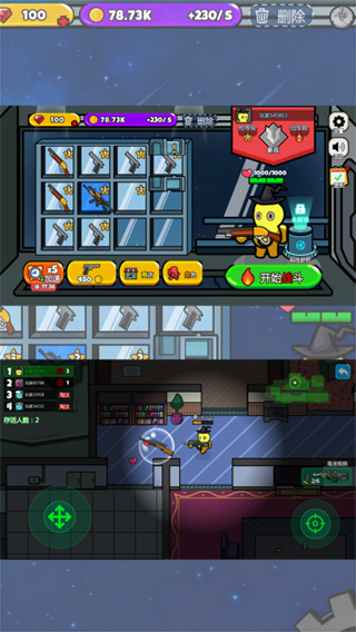 战斗过程中可收获金币,金币可用于在商店购买各式各样的酷炫武器,为后续战斗与合成升级提供基础,让参与者不断丰富自身的装备库。
