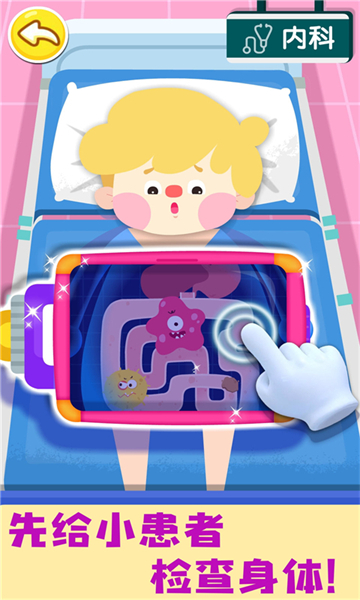 宝宝城市诊所手游可以让小朋友学习到更多的小知识,作为一名医生来用各种不同的仪器来对病人进行治疗,各种不同的应急状况你都要面对喔,科室、发烧、划伤等大小病情,你都会遇到,教会他们如何的治疗。