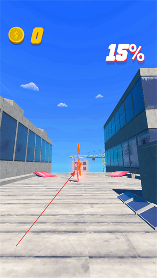 1、操控角色在天台移动,右侧进度条显示15%,避开障碍持续前进积累进度。