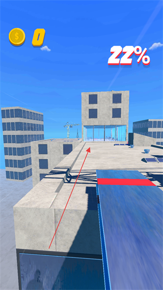 2、通过蓝色跳板移动,进度条提升至22%,向目标建筑方向推进。