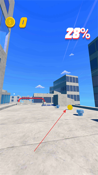 3、继续跑酷前进,收集金币,进度条升至28%,维持路线推进关卡。