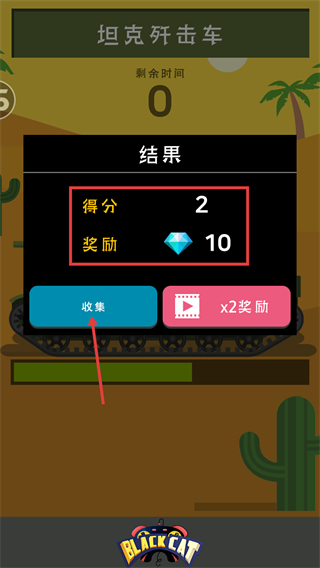 4、结束后点击【收集】,获取【得分-2】对应的【奖励-钻石-10】,也可看广告拿【x2奖励】提升收益。