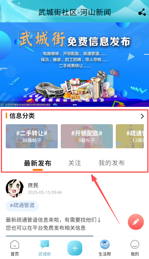 2、在“武城街”板块里,你可以免费发布和查看本地生活服务信息,这个功能对处理日常琐事很有帮助呢。