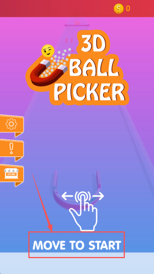 2、进入关卡:在3D BALL PICKER界面MOVE TO START开始。