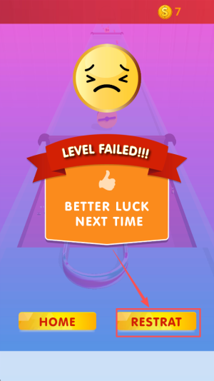 4、结束结算:到达BETTER LUCK NEXT TIME界面,点击RESTRAT重开。