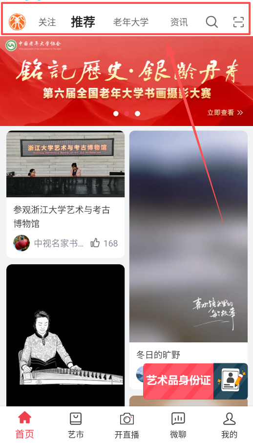 2、首页内容很丰富哦,分为关注、推荐、老年大学和资讯等板块,轻轻滑动就能发现不少有趣内容。