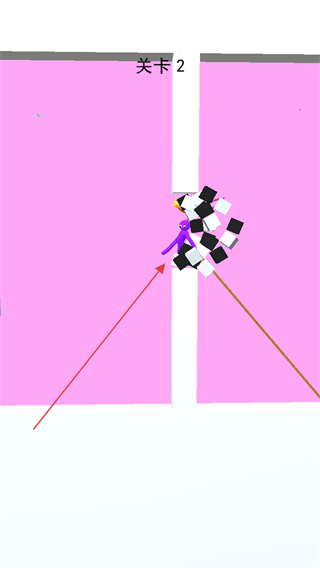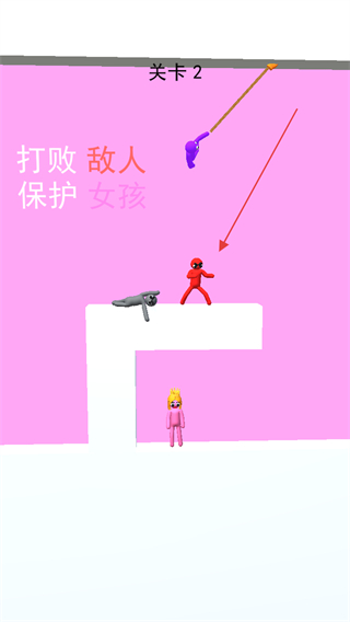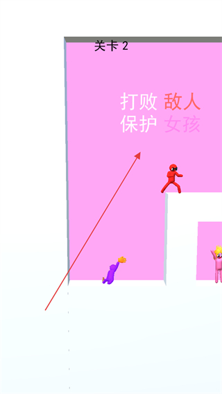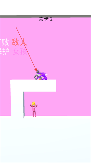 1、在关卡2中,操控紫色角色移动,目标是击败敌人、保护女孩,向红色敌人方向推进。