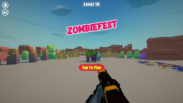 - 射击僵尸的节日是一款卡通风格的3D画面类射击僵尸手游