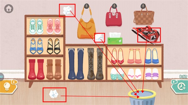 3、玩家们再游戏中需要仔细的观察,并且也需要推理能力,查看物品的分类,同时找出最近的位置和顺序,提高游戏得分。