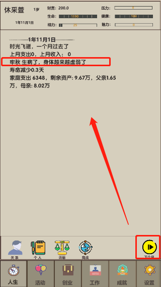 时间加速的过程中,会随机弹出各种选择,如果处理不当可能会出现各种不良反应,削弱角色的各项属性
