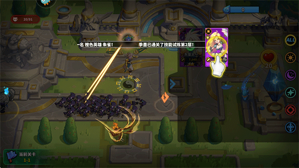 4、一大波敌人正在来袭,放置的英雄会自动攻击敌人,玩家只需要运用策略合理分配英雄站位和攻击方式、时机;
