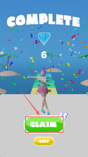 4、领取奖励:到达COMPLETE界面点击CLAIM领取金币。
