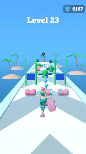 3、内容含扔包机制:达成条件后可将变大的包包扔出,扔得越远可能获得更多奖励,丰富跑酷玩法,避免单一前进的枯燥。