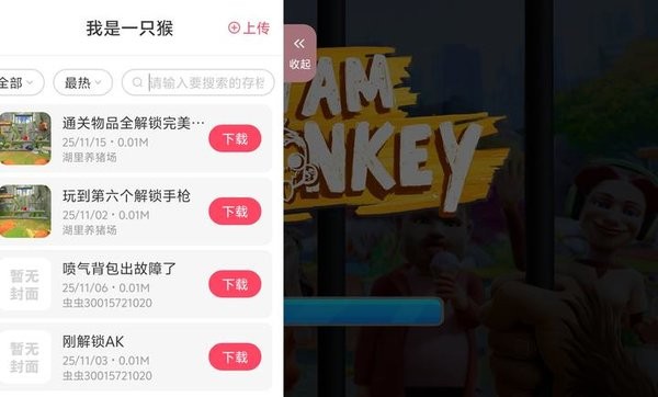 我是一只猴(I Am Monkey)作为一款以猴子视角展开的趣味解谜手游。在游戏里玩家将化身一只被困在动物园笼子中的猴子,核心尝试围绕与游客互动、完成任务展开,可尝试解谜逃离笼子或解救其他被困动物。其中,我是一只猴内置mod菜单版内的香蕉、摄像头和各种随机物品均可被抓取、吞食或投掷。笼子、地板以及游客送来的每一份礼物都具有完全的互动性,让玩具每一次尝试都独一无二。