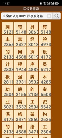 1、软件将GB2312数字表上的内容全部一比一刻录在软件中,用户使用输入框搜索即可。