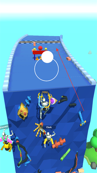 4、向终点旗帜移动,抵达终点完成关卡,获取通关奖励。