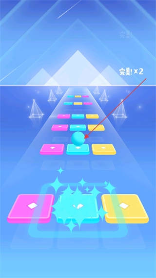 2、操控小球落到同色方块上,积累完美×2的评价,保持节奏推进。