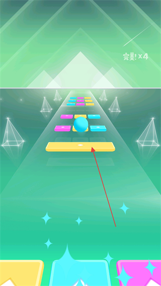 4、持续操控小球匹配方块颜色,使完美×4,沿赛道继续前进得分。