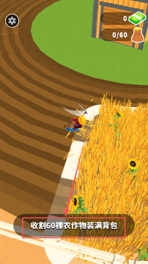 3、收割作物:按提示收割60棵农作物至背包满格。