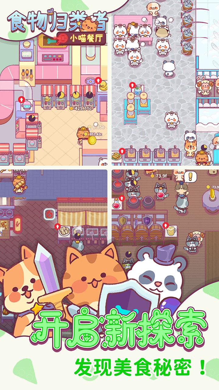 《食物归类者》这是一款模拟经营手游,简单直观的游戏玩法,操作体验真的十分的有意思,画风也非常的温馨。只需点击屏幕即可开始你的冒险之旅。主题是一位猫厨师经营一家餐厅。玩家将变身为猫厨师,与一群猫厨师一起经营一家餐厅,满足各种动物顾客的烹饪需求,创造自己的烹饪世界。